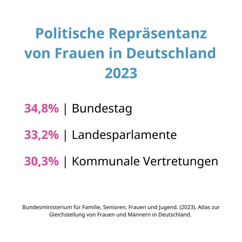 Leider sind Frauen, weitaus stärker noch als in der Landes- und Bundespolitik, auch auf der kommunalpolitischen Ebene unterrepräsentiert. Ein anschauliches Beispiel: Es gibt mehr Oberbürgermeister namens Thomas als Oberbürgermeisterinnen (Katapult Magazin, 2020). Diese mangelnde Präsenz von Frauen geht nicht nur mit einer mangelnden Präsenz von bestimmten Themen und Perspektiven in kommunalpolitischen Entscheidungsprozessen einher, sondern führt auch dazu, dass in der Wahrnehmung der Bevölkerung das Bild eines männlichen Kommunalpolitikers dominiert. Für Mädchen und Frauen fehlen daher oftmals weibliche Vorbilder und das Geschlechterungleichgewicht besteht fort oder wird sogar noch verstärkt.